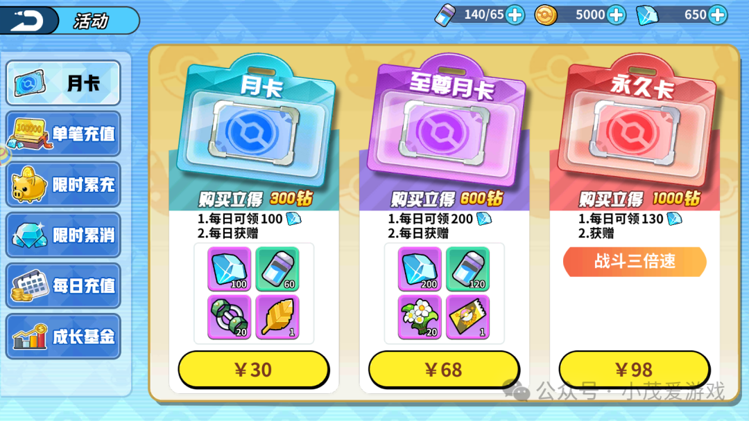 所以每天送你体力的月卡是冲榜必须要买的
