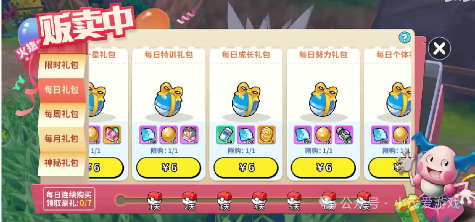 还有每日6元的体力礼包
