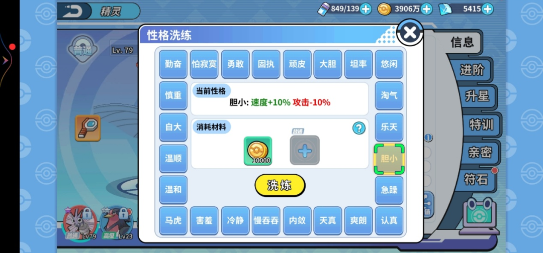 首先,在孵蛋屋里,孵出一个闪光摩鲁蛾,然后性格选胆小,增加速度减少攻击,反正对摩鲁蛾来说,攻击没用,他走的是特攻路线 ,其次,特性选复眼,增加招式的命中率 ,再然后,符石的话,全选速度,这样有整体加成 。